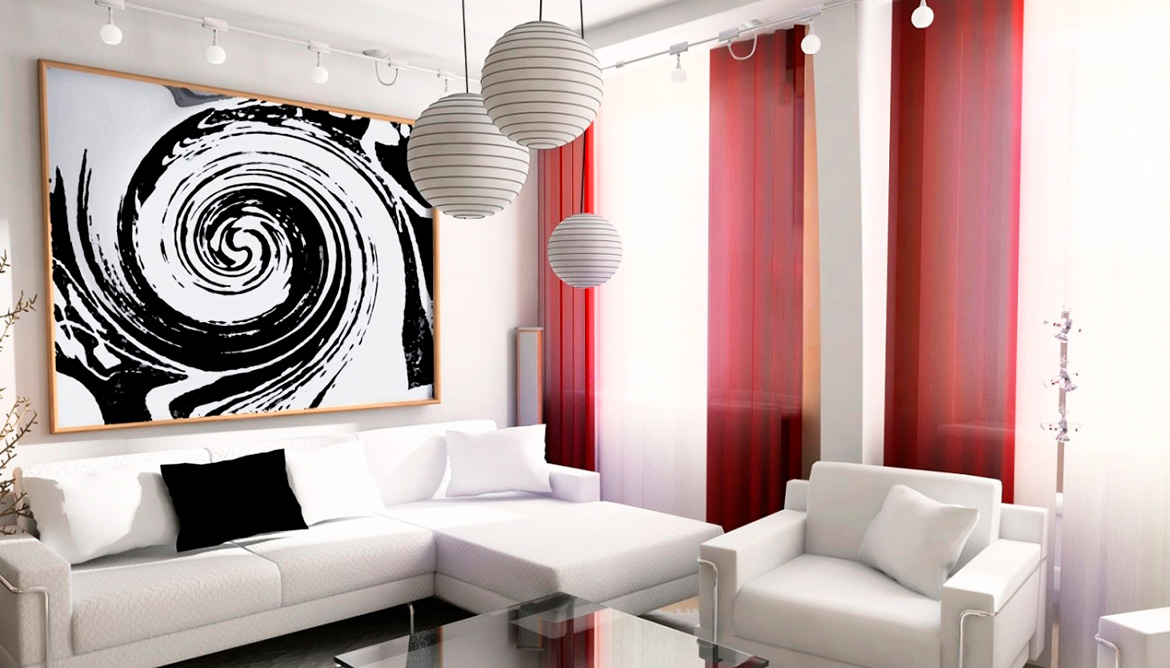 В дизайне преобладает минимализм? Найти подходящую ткань будет легко. Минимализм интерьера предполагает умеренность в дизайне. В 90% случаев к белым предметам интерьера подходят прямые или чуть волнистые шторы насыщенных оттенков. В гостиной можно смело использовать кричащие контрасты, для спальни лучше выбрать спокойные цвета, а кухня будет «рада» практичным вариантам (укороченным занавескам, римским шторам).