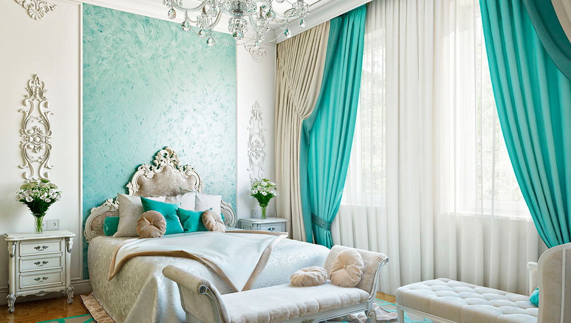 Мятные шторы в интерьере — триумф цвета Тиффани