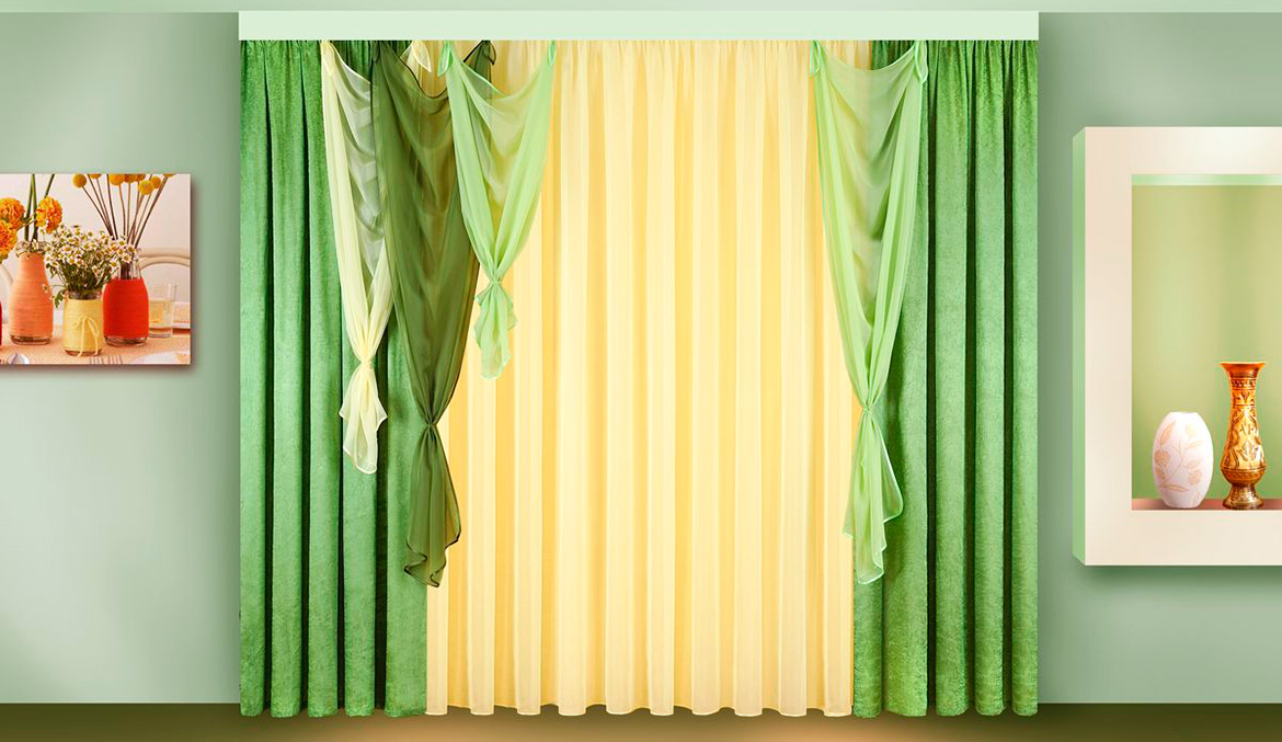Салатовые шторы — в интерьере кухни, гостиной, детской