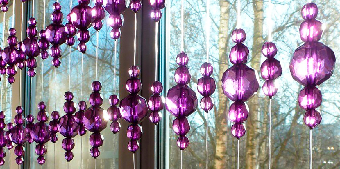Стремление к оригинальности наталкивает на поиск новых решений, одним из которых являются шторы из стекляруса. Бесконечное количество нитей с нанизанными стеклянными бусинами, без сомнения, украсит любой интерьер.